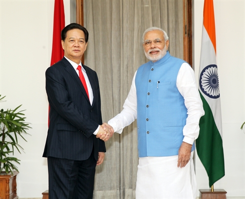 | Le Premier ministre vietnamien Nguyên Tân Dung (gauche) et son homologue indien Narendra Modi, le 28 octobre à New Delhi. |