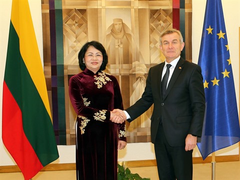 Lors de l’entretien avec la cheffe de l’État lituanien, Mme Thinh a affirmé que le Vietnam souhaitait toujours stimuler les relations d’amitié traditionnelles et de coopération dans tous les domaines avec la Lituanie, tout en proposant le renforcement de la coopération économique et commerciale et d’investissement.