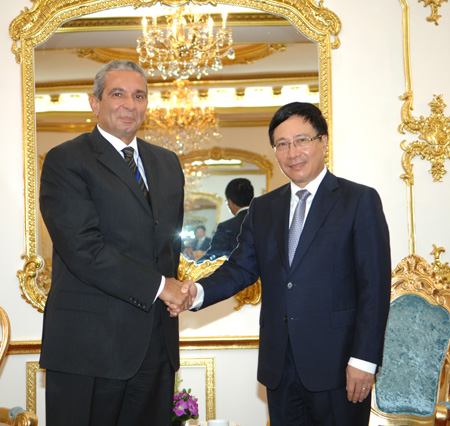 | Le ministre vietnamien des Afffaires étrangères Pham Binh Minh (droite) a reçu, le 4 novembre à Hanoi, l'assistant du ministre égyptien des AE, Ahmed Ismail. |