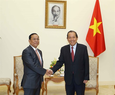 | Le vice-Premier ministre Truong Hoà Binh (droite) et le ministre birman des Affaires frontalières Ye Aung. |