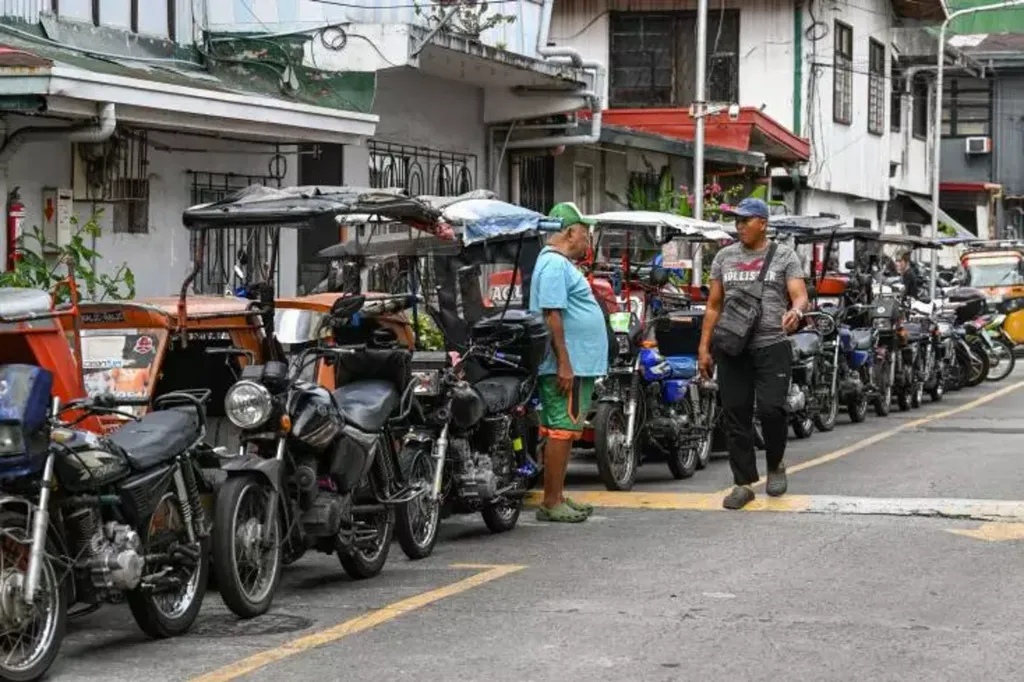 | Des tricycles sont stationnés le long d'une rue de Manille (Philippines), le 17 mars 2026. |