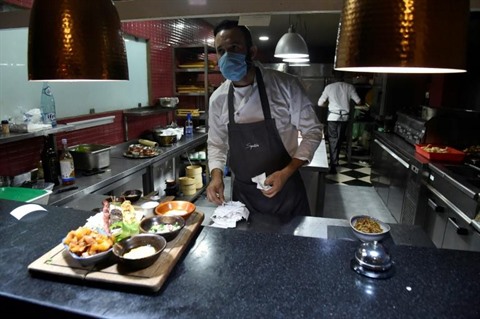 | Un cuisinier porte un masque protecteur contre le nouveau coronavirus dans un restaurant d’Alger, le 19 août. |