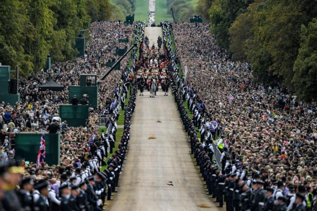 | Le cercueil de la reine Elizabeth II remonte The Long Walk en direction du château de Windsor, lors d'une procession, le 19 septembre à Windsor.  |