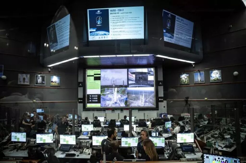 | La salle de contrôle Jupiter au Centre spatial de Kourou, en Guyane française, le 3 mars. |
