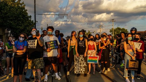 | Une manifestation contre les brutalités policières à Kenosha. |