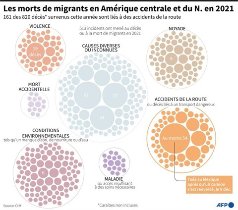 | Les décès de migrants en Amérique centrale et du Nord en 2021. |