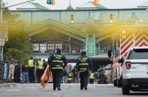 | La police du New Jersey sécurise le lieu de la catastrophe ferroviaire, à Hoboken le 29 septembre. |
