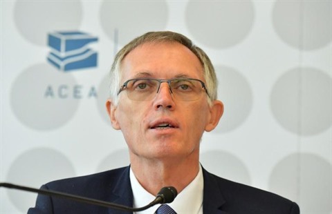 | Le président du directoire de PSA Carlos Tavares, à Francfort le 11 septembre. |