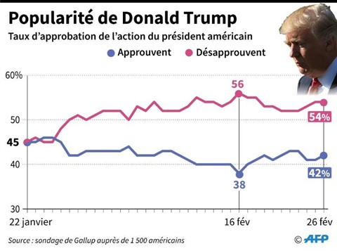 Évolution du taux d'approbation du président des États-Unis, Donald Trump. Photo : AFP/VNA/CVN |