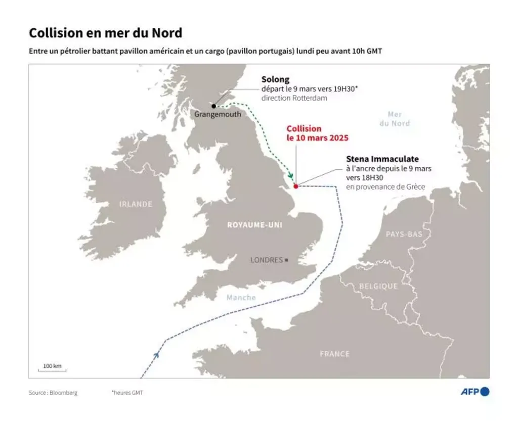 Le 10 mars, le Solong, un porte-conteneurs battant pavillon portugais, percutait en plein jour le pétrolier Stena Immaculate, affrété par l'armée américaine, qui se trouvait au mouillage à une vingtaine de kilomètres des côtes du nord-est de l'Angleterre.