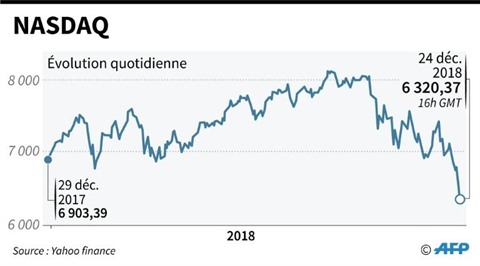 Le Nikkei était pourtant monté à près de 25.000 points début octobre, et a donc perdu plus de 20% depuis cette date. Cette contre-performance fait entrer l'indice dans la catégorie de "marché déprimé" ou "bear market", en référence à l'ours, symbole d'un marché démoralisé, tout comme le Nasdaq vendredi 21 décembre à New York.