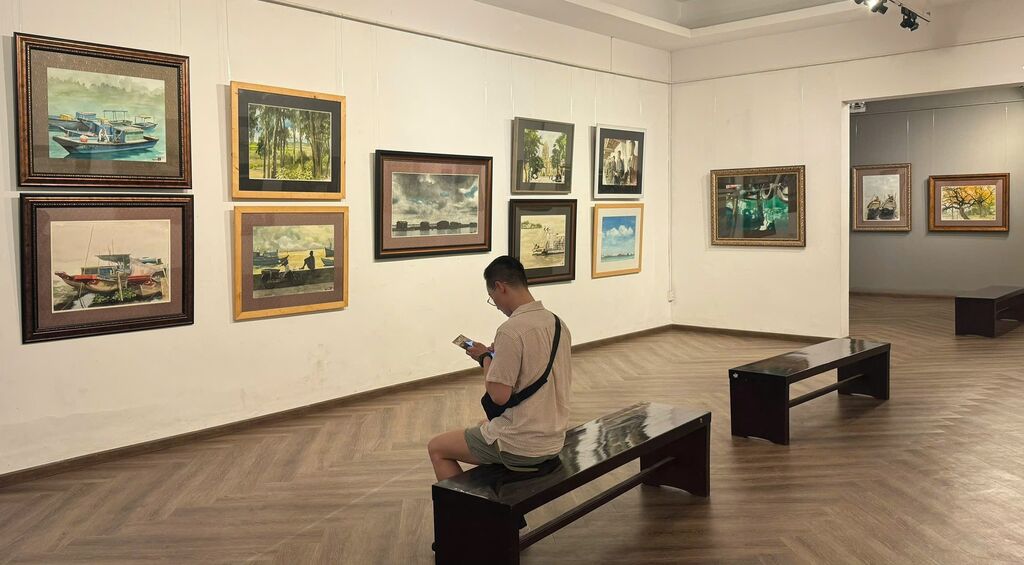 Intitulée "Tâm tình miền sông nước" (Confidences de la région des rivières), l'exposition a présenté 160 peintures créées par Hông Quân depuis 2019. C'est le lancement le plus riche en œuvres d'un artiste passionné par l'aquarelle.