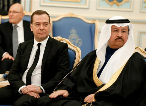 | Le Premier ministre russe Dmitry Medvedev (gauche) lors des cérémonies en l'honneur du roi défunt Abdallah, le 24 janvier à Ryad. |