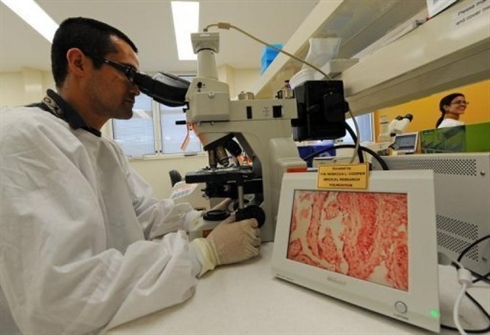 | Un microbiologiste observe des échantillons dans un microscope. Photo : AFP/VNA/CVN |