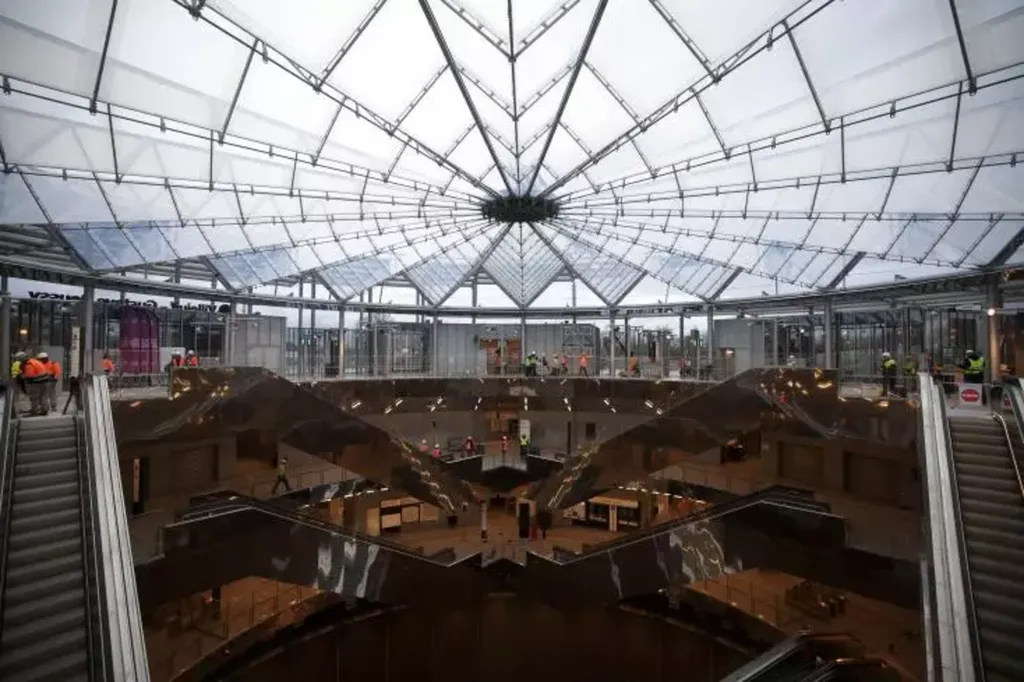 | La station de métro Saint-Denis-Pleyel, extension de la ligne 14 à Saint-Denis, en Seine-Saint-Denis, le 2 juillet 2024. |