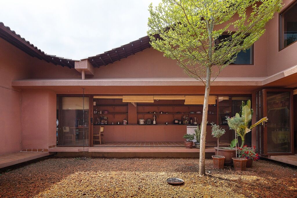 | La cour au milieu de la maison est à la fois un lieu de vie et permet d’aérer toute la maison. |