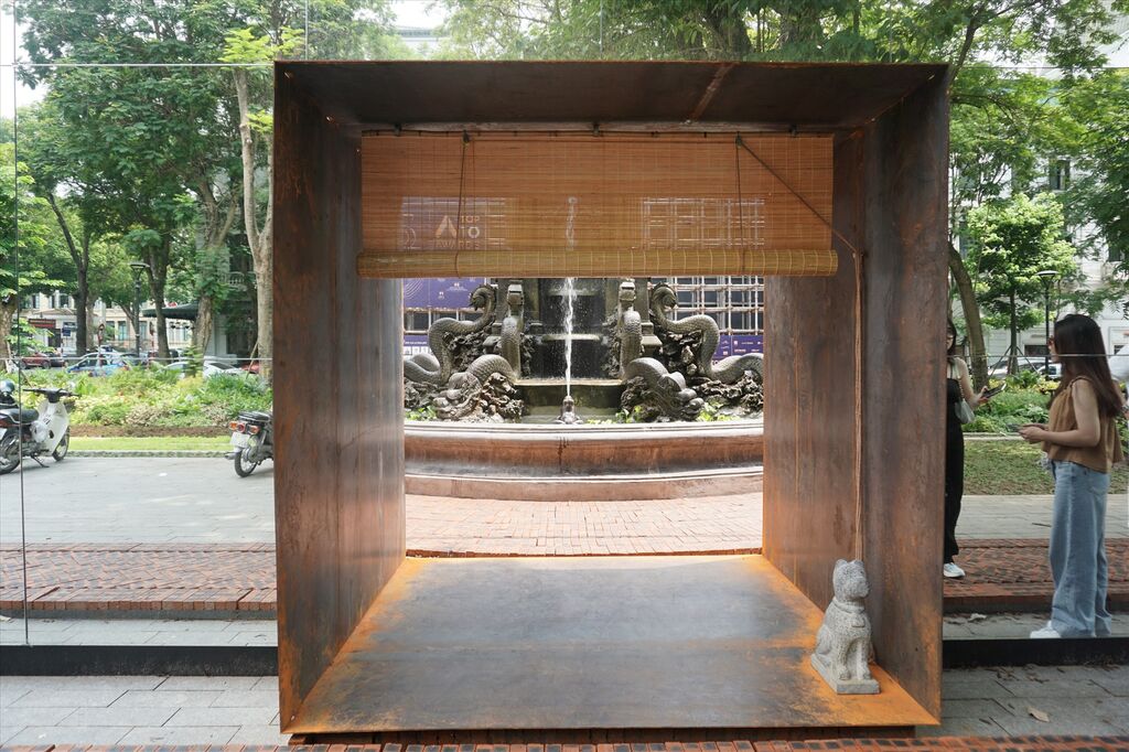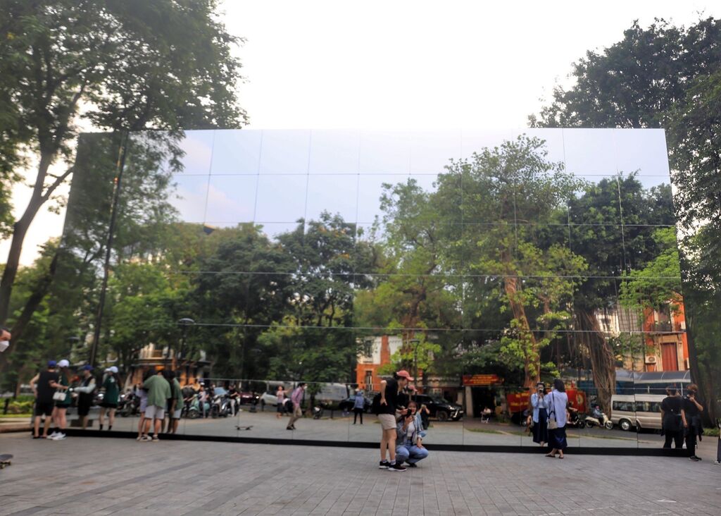 Ces jours-ci, en passant devant le parc Diên Hông, connu sous le nom du parc de la fontaine Le Crapaud, au cœur de la capitale, les gens sont déconcertés car ils ne voient plus la fameuse fontaine mais plutôt un énorme cube fait de miroirs en verre.