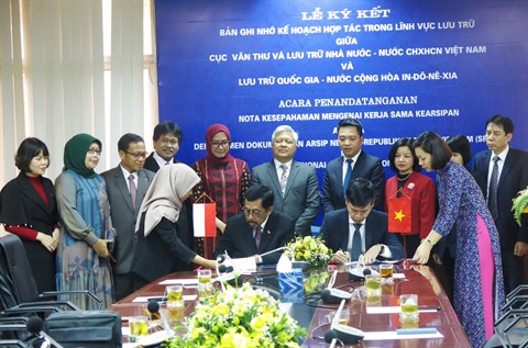| Signature de coopération entre les deux Archives vietnamienne et indonésienne, le 23 décembre à Hanoï. |