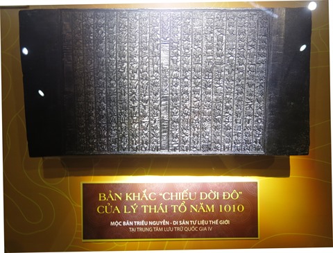 | La tablette de bois de l’édit royal de déplacement de la capitale, du roi Ly Công Uân (974-1028). |
