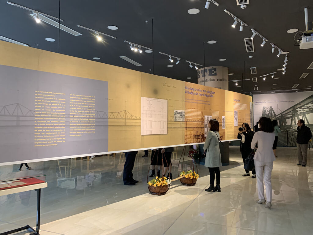 | L’exposition "Pont de Long Biên - Témoin de l'histoire", tenue en décembre dernier attire de nombreux visiteurs. |