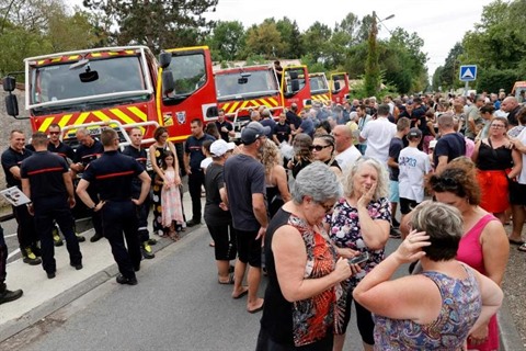 | Des habitants de Saint-Michel-de-Rieufret (Gironde) saluent les pompiers partant lutter contre les feux de forêt, le 22 juillet. |