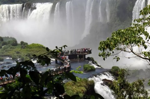 | Des touristes marchent sur un pont du côté brésilien des chutes d'Iguazu, le 18 janvier. |