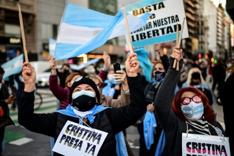 | Des manifestants protestent contre le confinement imposé par le gouvernement pour lutter contre le COVID-19, à Buenos Aires, le 25 mai. |