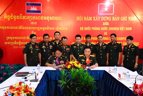 Sur la base du protocole sur la coopération bilatérale de la défense pour la période 2015-2019, le ministère vietnamien de la Défense aidera son homologue cambodgien à organiser des cours d’entraînement et de formation professionnelle, l’octroi des bourses d’étude, l’aide pour la construction des infrastructures du Département de la législation du ministère cambodgien de la Défense.