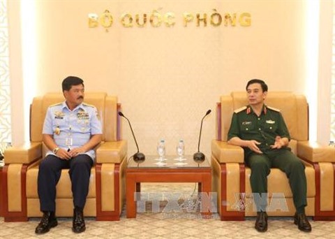| Le général de division Phan Van Giang (droite) et le chef d'état-major de l'Armée de l'air indonésienne Hadi Tjahjanto. |