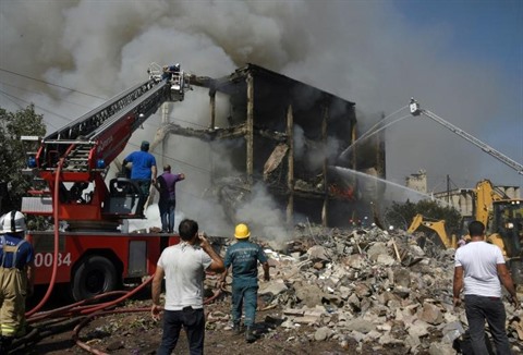 | Opérations de secours sur le site d'une explosion d'origine indéterminée dans une zone commerciale d'Erevan, le 14 août en Arménie. |