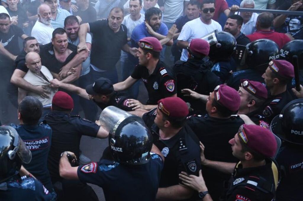 | Affrontements entre policiers et manifestants à Erevan, le 12 juin en Arménie. |