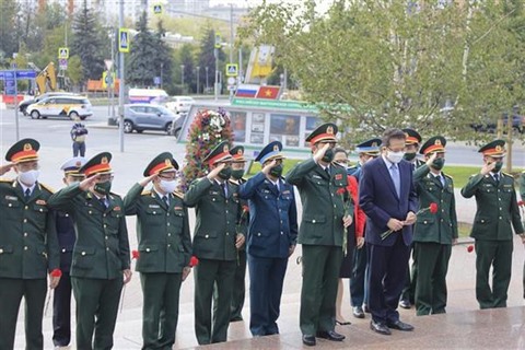 En Russie, le 25 août, la haute délégation de l'Armée populaire vietnamienne (APV) dirigée par le général de division Phùng Si Tân, chef d'état-major adjoint de l’APV, est venue offrir des fleurs au pied de la statue du Président Hô Chi Minh à Moscou.