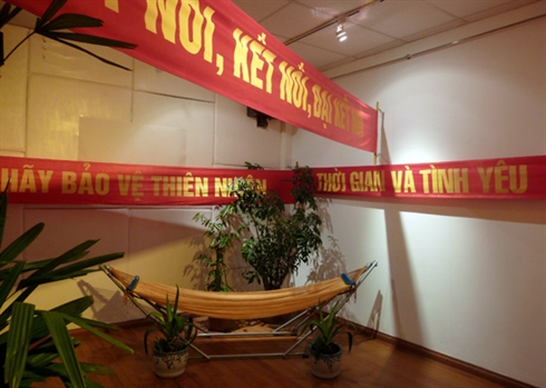 | Les installations d’Arno Baude nous mettent à l’aise. Un hamac suspendu pour la première installation «Made in Vietnam I» |