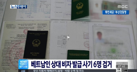 | La chaîne télévisée sud-coréenne MBC diffuse l'information sur l'arrestation de six escrocs de Vietnamiens à Pusan. Photo: VNA/CVN |