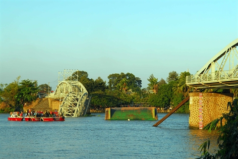 | Le pont ferroviaire Ghênh, province de Dông Nai (Sud), s'est effondré le 20 mars après avoir été heurté par une barge. |