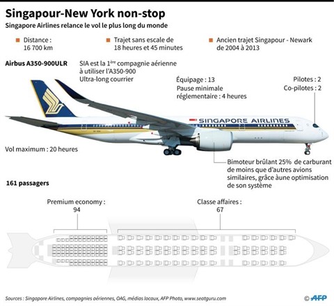 En théorie toujours, le vol New York-Singapour est un peu plus long que le trajet inverse, soit 18h45.