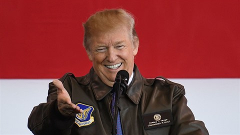 | Le président américain Donald Trump s'adresse à des soldats américains et japonais à son arrivée sur la base américaine de Yokota, près de Tokyo, le 5 novembre. Photo : AFP/VNA/CVN |