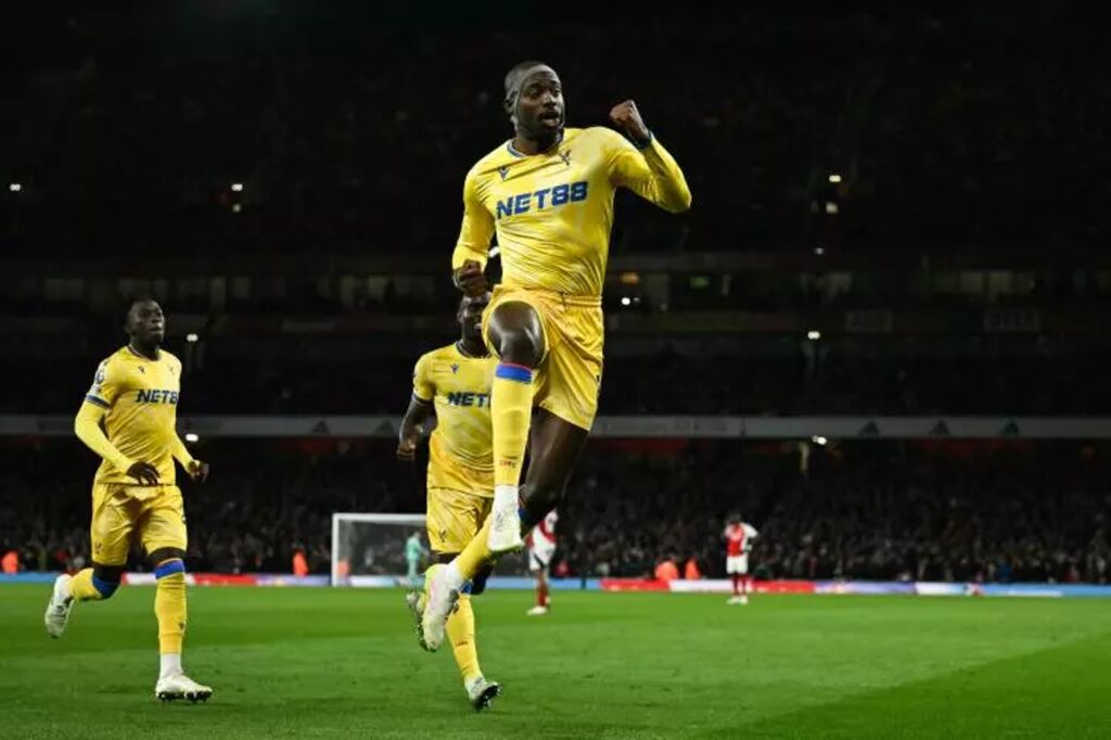 | L'attaquant français de Crystal Palace, Jean-Philippe Mateta, auteur du but égalisateur contre Arsenal (2-2), le 23 avril à l'Émirates Stadium de Londres. |