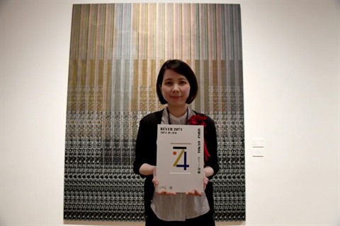 Aya Kawato, 29 ans, qui a réalisé une sérigraphie de 2 m sur 2,5 m en peinture acrylique brune et noire, semblable à un tissage, a étudié les techniques des tissus traditionnels de l'ancienne capitale impériale Kyoto.