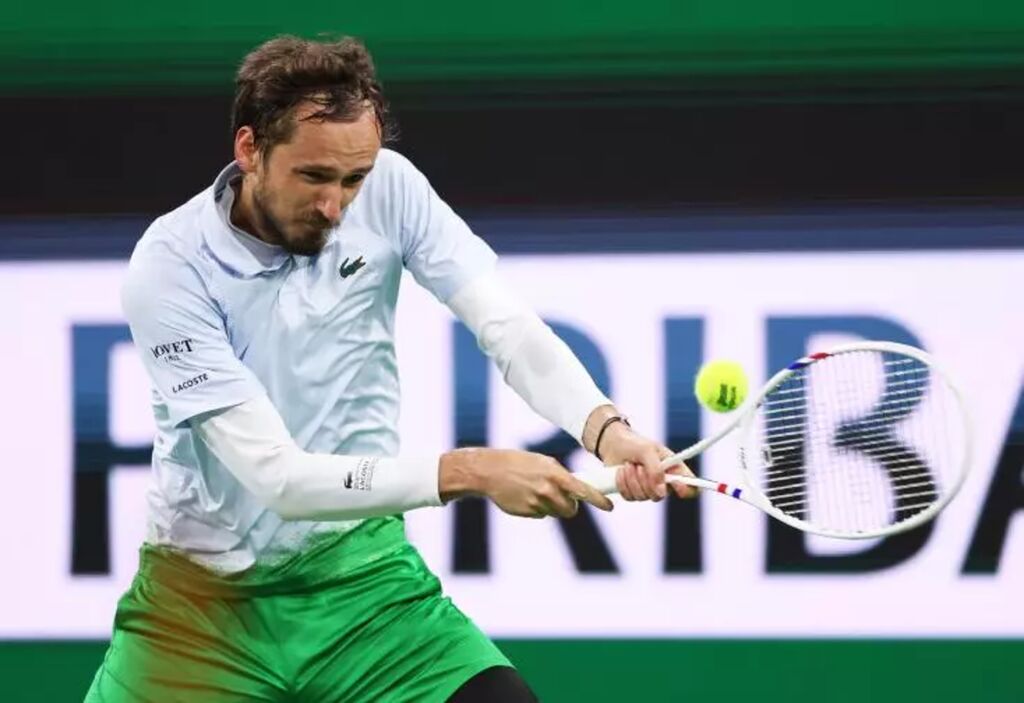 | Le Russe Daniil Medvedev face à l'Américain Tommy Paul en 8e de finale du Masters 1000 d'Indian Wells, le 11 mars. |