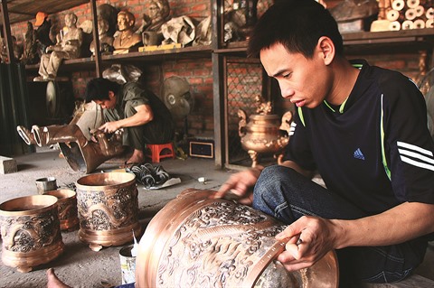| Dans le village des fondeurs de cuivre de Ngu Xa, à Hanoï. |