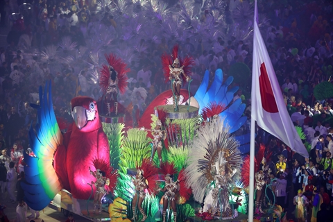 | Un spectacle lors d'une cérémonie de clôture des Jeux olympiques de Rio, le 21 août au stade Maracana. |