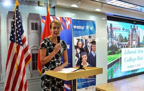 | La consule générale des États-Unis, Mary Tarnowka, lors d'un événement sur les universités américaines d'arts libéraux en 2016 à Hô Chi Minh-Ville. |