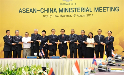 | Les ministres des Affaires étrangères de l'ASEAN et de la Chine, le 9 août à Nay Pyi Taw (Myanmar). |