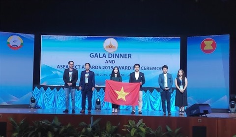 | La cérémonie de remise des Prix de l’ASEAN sur les technologies de l’information et de la communication 2019 tenue le 24 octobre dans la capitale laotienne Vientiane. |