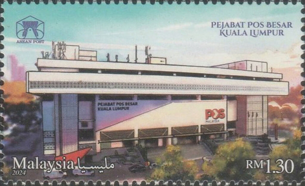 | Les timbres de l’ASEAN sur le thème Bâtiments de la Poste" de Singapour, de Thaïlande et de Malaisie. |