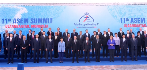 | Des délégués au 11e Sommet Asie-Europe en Mongolie. |