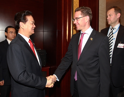 | Le Premier ministre Nguyên Tân Dung (gauche) a eu une rencontre avec son homologue finlandais, Jyrki Tapani Katainen, le 6 novembre au Laos lors de l'ASEM 9 |