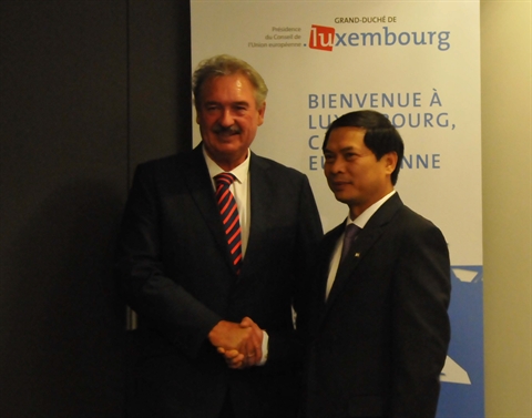 | Le vice-ministre vietnamien des Affaires étrangères Bùi Thanh Son (droite) et le ministre luxembourgeois des Affaires étrangères Jean Asselborn, le 5 novembre au Luxembourg. |