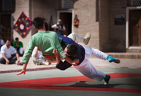 | Le kourach, la lutte traditionnelle d'Ouzbékistan. |